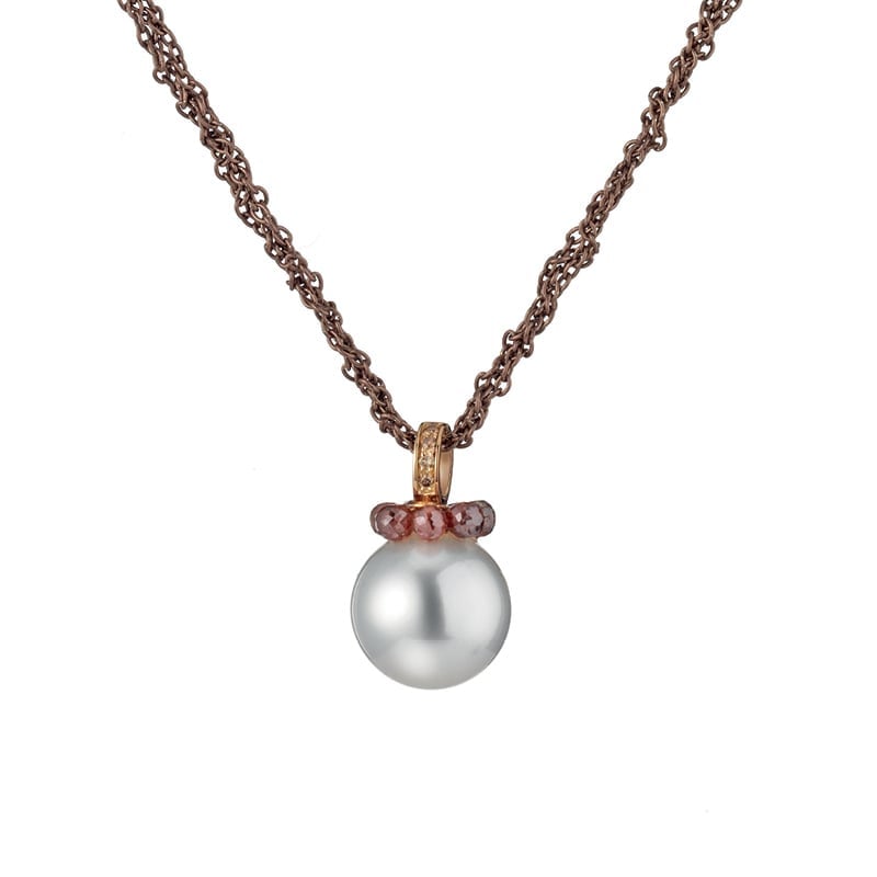 Details: HALSKETTE AUS ROSÉGOLD U. SILBER MIT PERLEN-ANHÄNGER