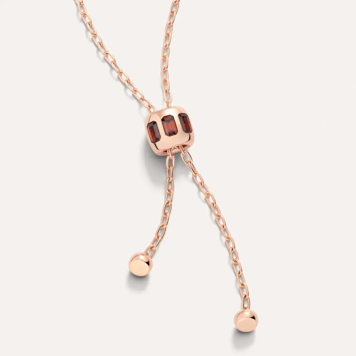 Details: HALSKETTE ICONICA AUS ROSÉGOLD MIT PYROP-GRANATEN