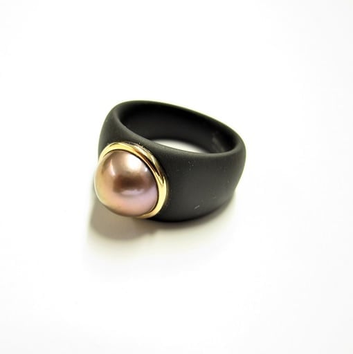 Details: RING AUS EDELSTAHL U. ROSÉGOLD MIT MING-PERLE