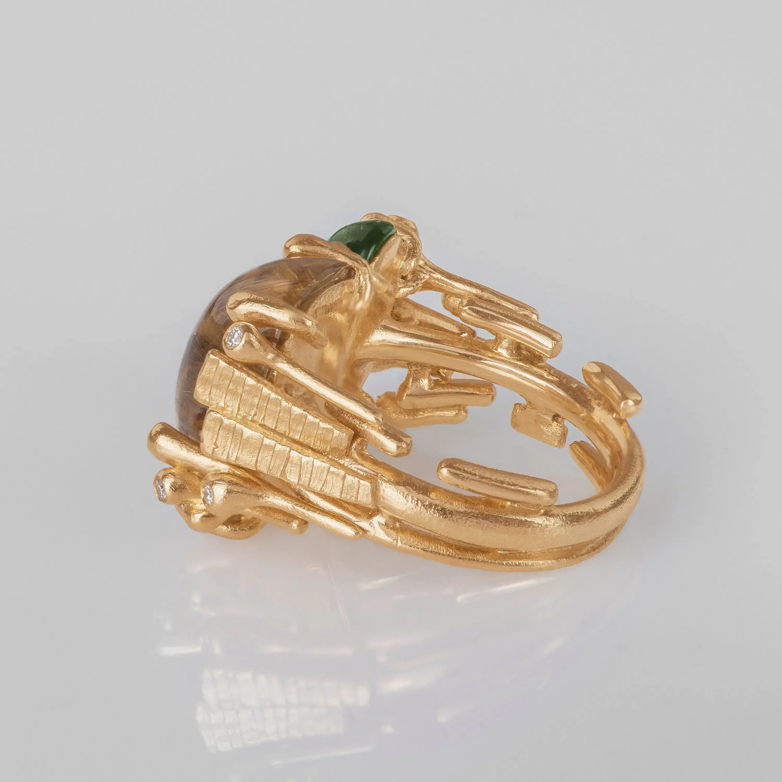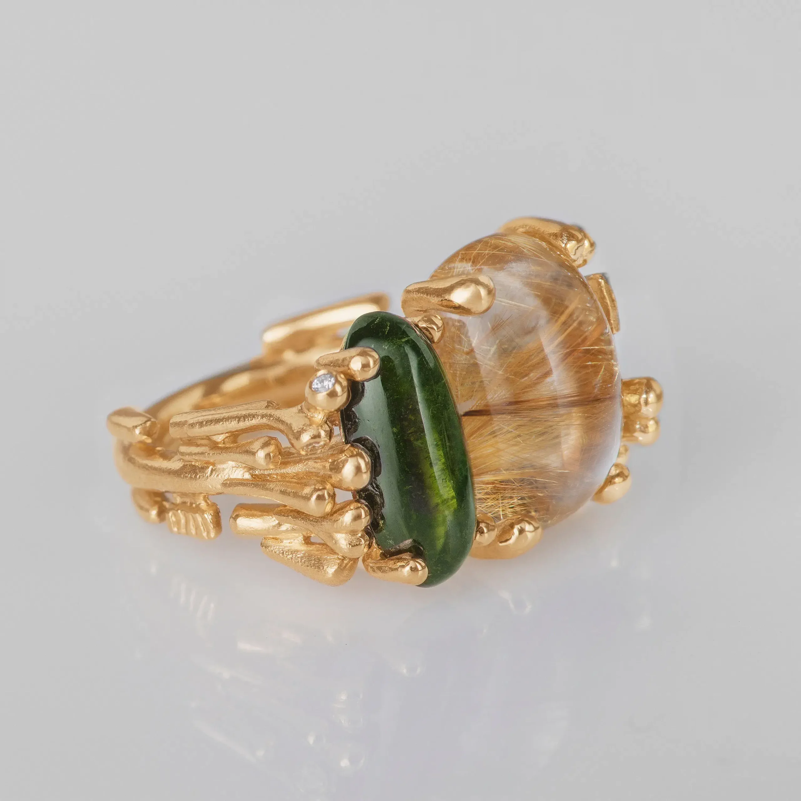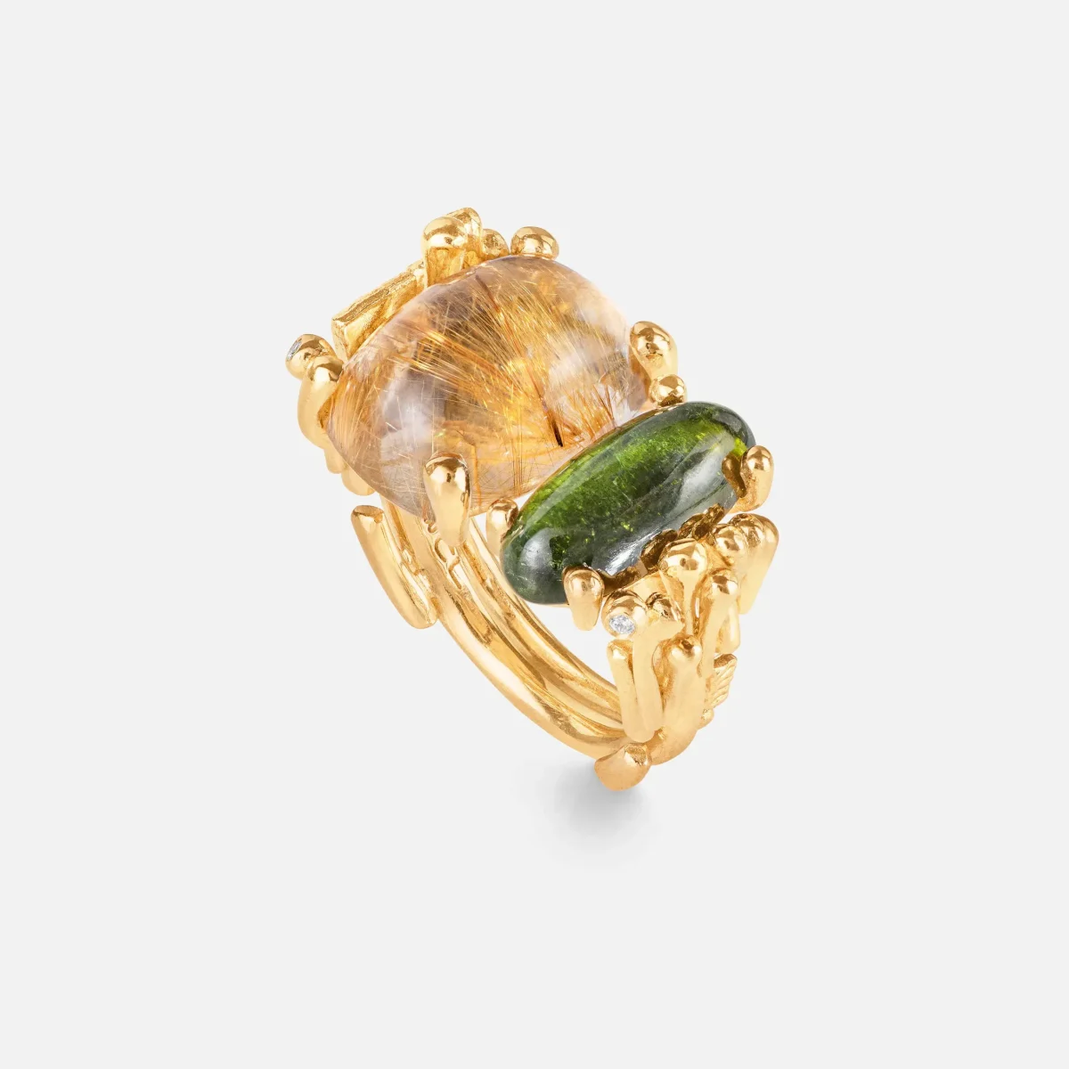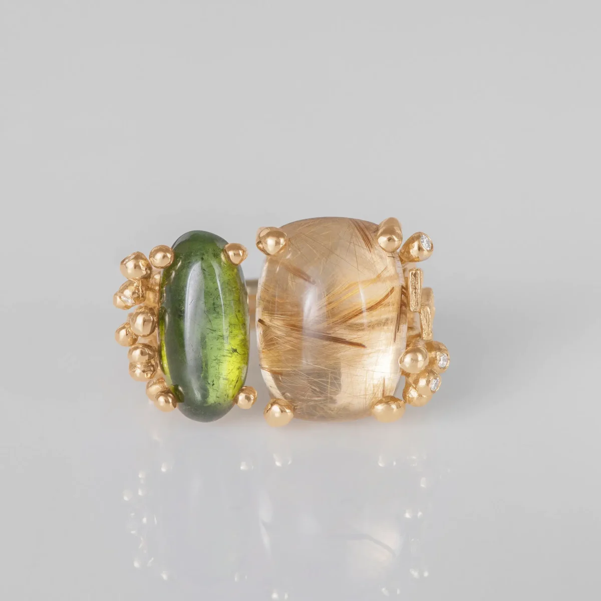 RING DOPPELT AUS GELBGOLD MIT GRÜNEM TURMALIN & DIAMANTEN